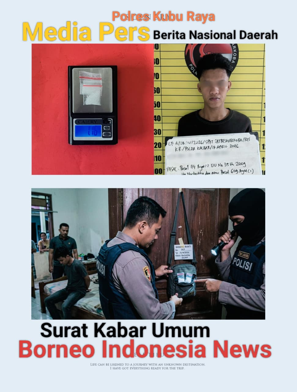 Kubu Raya –Borneoindonesianews.com,-Ruang gerak pengedar narkotika di wilayah hukum Polres Kubu Raya kian menyempit. Tim Labubu Satuan Reserse Narkoba Polres Kubu Raya meringkus seorang pemuda berinisial DI alias AM (23), yang diduga kuat sebagai motor peredaran sabu di Kecamatan Sungai Kakap.