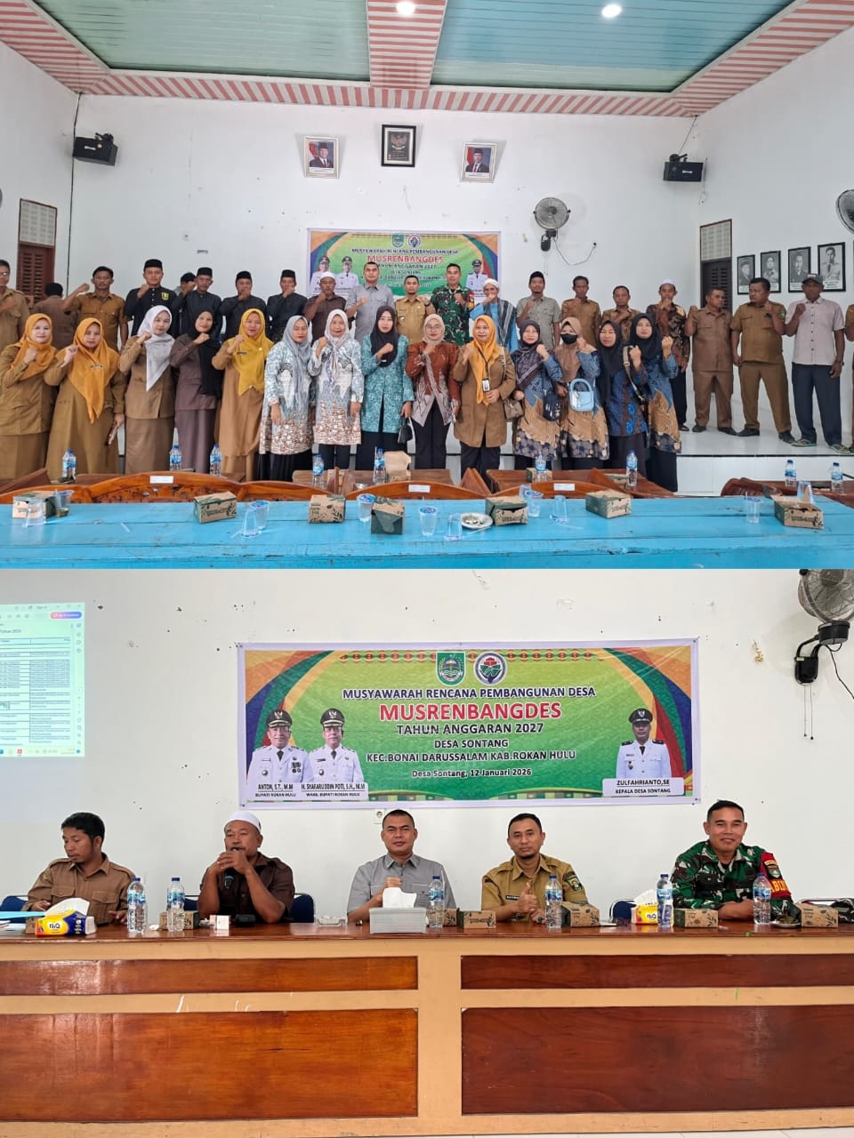 Rokan Hulu-Borneoindonesianews.com-Pemerintah Desa Sontang, Kecamatan Bonai Darussalam, Kabupaten Rokan Hulu, melaksanakan Musyawarah Perencanaan Pembangunan Desa (Musrenbangdes) Tahun Anggaran 2027 dengan tertib dan lancar.